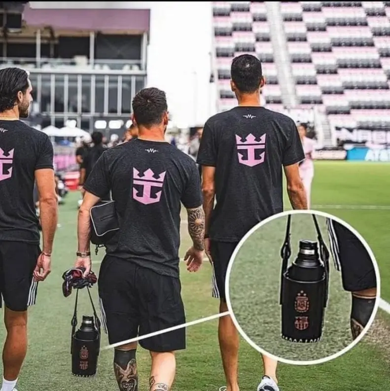 در این عکس مسی در کنار سرخیو بوسکتس در حال عزیمت به زمین ‌تمرین است. هواداران بارسلونا با زوم کردن روی قمقمه لئو متوجه ‌شدند که دو آرم روی قممه او حک شده است: آرم تیم ملی آرژانتین و ‌آرم باشگاه بارسلونا. ‌