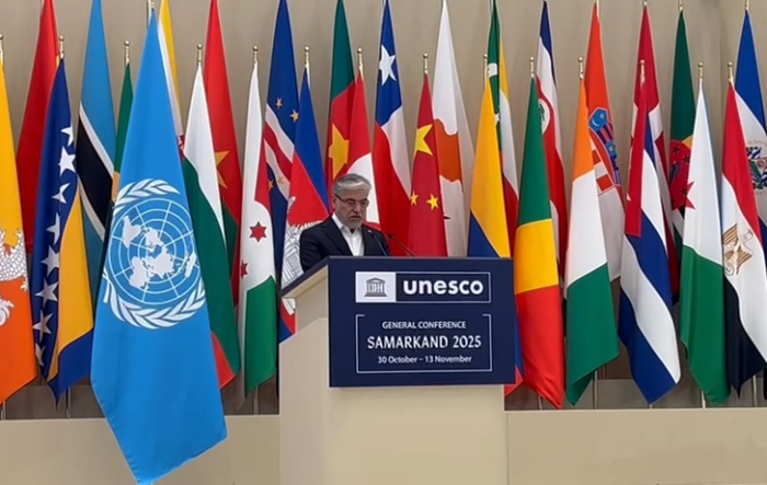 دکتر سیمایی ادامه داد: همچنین از خانم آدره آزوله بهخاطر محکومیت صریح و شجاعانه حملات علیه روزنامهنگاران ایرانی قدردانی میکنیم. آزادی بیان و امنیت فعالان رسانهای از اصول ضروری برای داشتن جامعهای آگاه و عادلانه است. با وجود تحریمهای ناعادلانه، ایران به حق جهانی آموزش پایبند مانده و مدارس و دانشگاههای خود را به روی هزاران دانشجوی افغان باز نگه داشته است و برای آنها امنیت، فرصت و امید فراهم میکند.