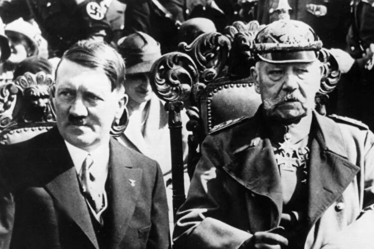 عکسی کمتر دیده شده از هیتلر را در «روز پوتسدام»، ۲۱ مارس ۱۹۳۳، مشاهده می کنید که در حال دست دادن و تعظیم محترمانه در برابر هیندنبورگ، رئیسجمهور وایمار است.