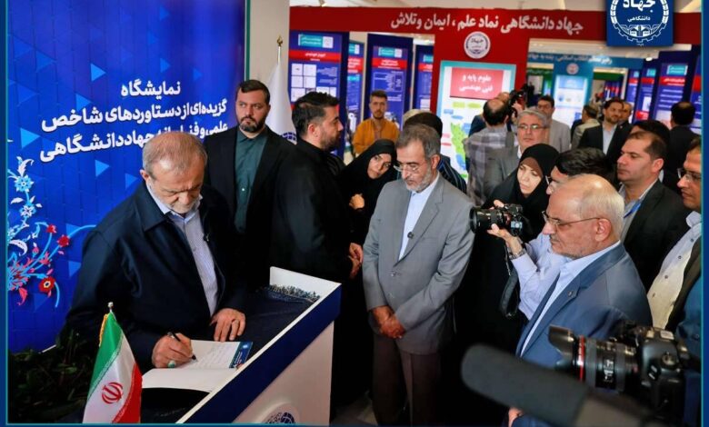 دکتر مسعود پزشکیان، رئیسجمهور، در بازدید از نمایشگاه گزیدهای از دستاوردهای شاخص علمی و فناورانه جهاددانشگاهی، با نگارش یادداشتی در دفتر یادبود این نمایشگاه، ضمن قدردانی از تلاشها و توانمندیهای متخصصان این نهاد، بر هماهنگی با سازمانها و وزارتخانهها برای پشتیبانی از دستاوردهای این نهاد تأکید کرد.