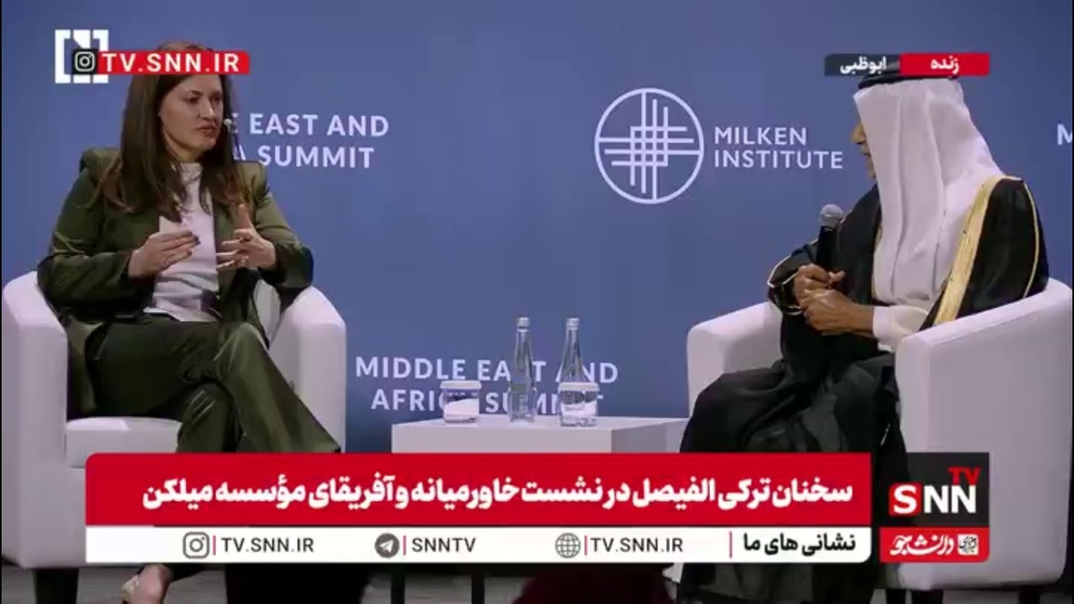 رئیس سابق اطلاعات عربستان در نشست خاورمیانه و آفریقای موسسه میلکن: فلسطینی‌ها در غزه و کرانه باختری به‌طور مداوم هدف حملات اسرائیل قرار می‌گیرند. در لبنان نیز اسرائیل آتش‌بس را رعایت نمی‌کند و به حملات ادامه می‌دهد. رفتار اسرائیل هیچ نشانی از صلح و آرامش در منطقه ندارد. اسرائیل امروز نقش برهم‌زننده ثبات و ایجادکننده بحران در منطقه را بازی می‌کند. مهار اسرائیل باید نه تنها توسط آمریکا، بلکه از سوی جامعه جهانی انجام شود.